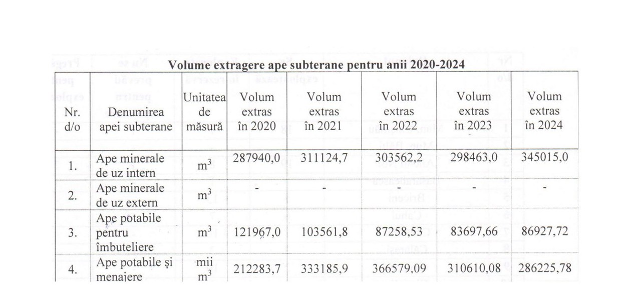 Data from the Ministry of Environment, provided at the request of Teleradio-Moldova, indicate that the total volume of groundwater extracted between 2020 and 2024 exceeded 1.2 billion tons. The largest volume extracted occurred in 2022, with nearly 367 million tons brought to the surface.