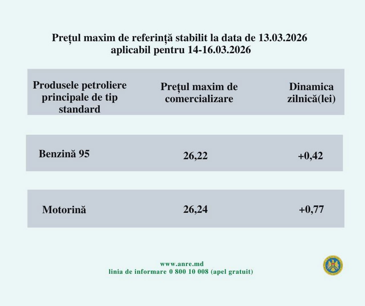 Prețul motorinei l-a depășit pe cel al benzinei. În weekend, litrul de motorină va costa 26 de lei și 24 de bani, cu 77 de bani mai mult decât astăzi, potrivit prețurilor-plafon stabilite de Agenția Națională pentru Reglementare în Energetică (ANRE).