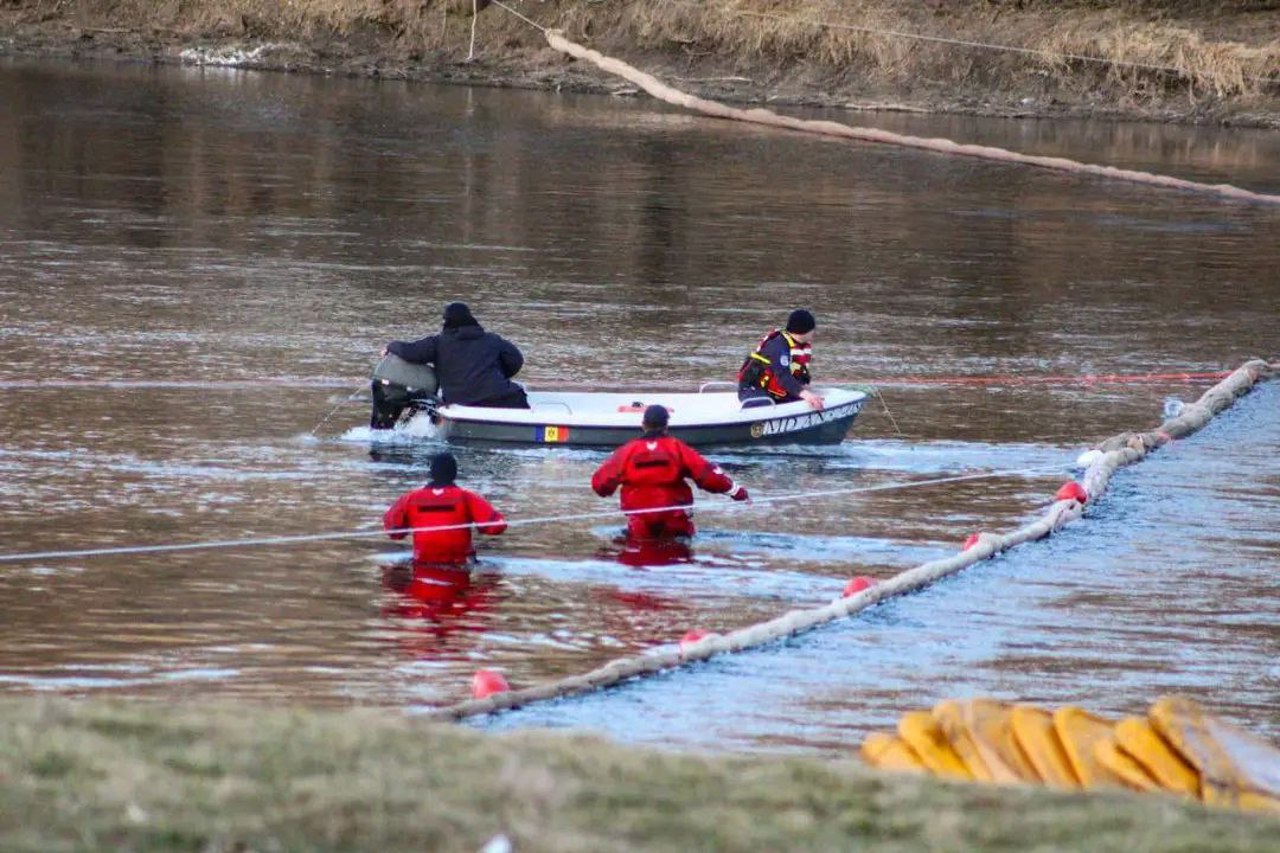 Între timp, echipele de intervenție continuă instalarea echipamentelor pentru limitarea poluării, iar partenerii din România au trimis materiale absorbante și alte echipamente necesare pentru a reduce impactul asupra apei.