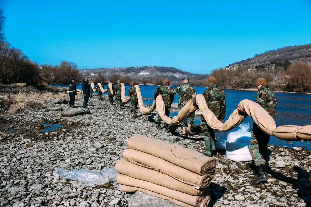 „Militarii noștri, împreună cu colegii din IGSU și alte structuri au amplasat baraje de protecție și filtre de curățare-dezinfecție pe segmentul menționat”, a informat Ministerul Apărării.