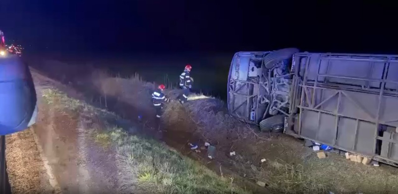 Accidentul a fost raportat la ora 04:30. Șoferul autocarului a declarat că i-a apărut o mașină pe contrasens și, pentru a evita un impact frontal, a tras dreapta de volan, părăsind partea carosabilă, au declarat surse din echipa de intervenție pentru HotNews.