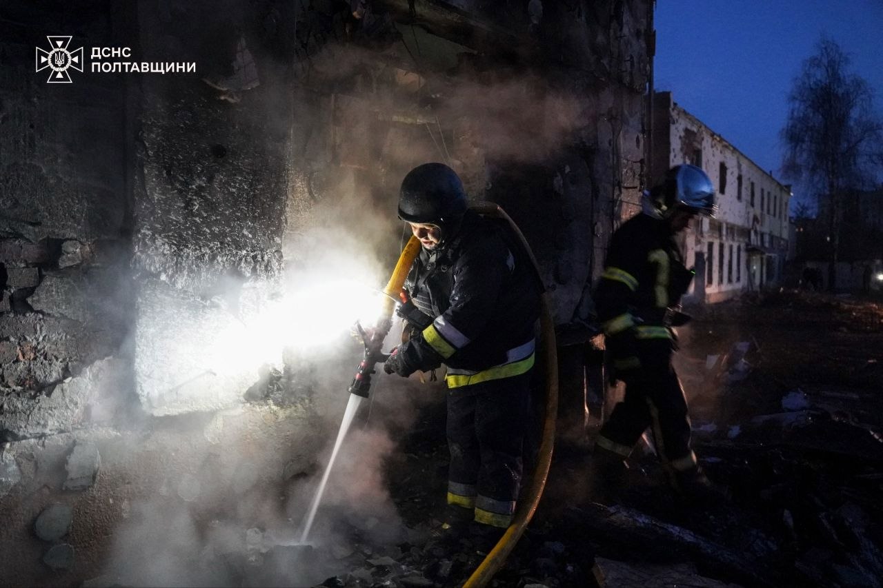 Potrivit RBC-Ucraina, care citează o postare pe Telegram a șefului administrației militare regionale Poltava, Vitalii Diakovnici, primele consecințe ale atacului au fost înregistrate în jurul orei 3:25: în comunitatea Poltava au fost avariate mai multe locuințe și clădirea unui hotel. În urma loviturilor au izbucnit incendii, iar echipele de intervenție au ajuns rapid la fața locului.