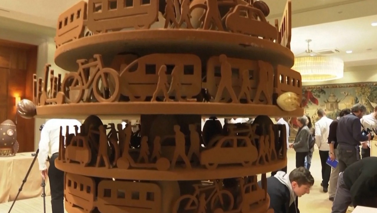 „Am reprezentat această mobilitate, această densitate. Are pietoni, biciclete sau trotinete, transport public și, de asemenea, mașini. Și toți acești oameni sunt răspândiți pe diferite niveluri, încercând să se deplaseze cât mai bine posibil. Și simt că reprezintă orașul Bruxelles”, a spus ciocolatierul Pierre Marcolini.
