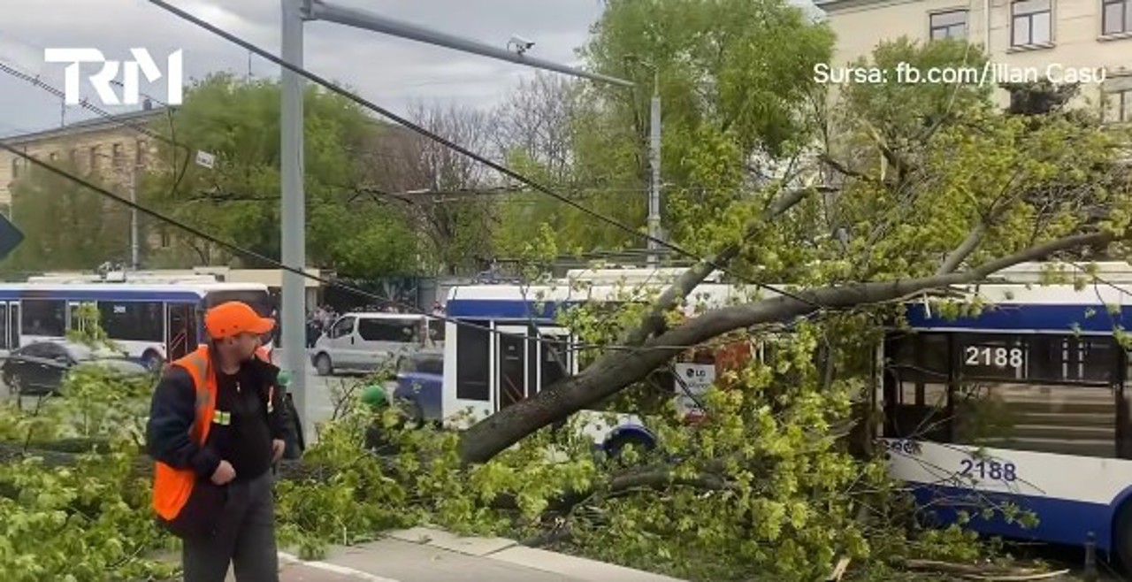 Vântul puternic face ravagii în capitală. O creangă masivă a căzut peste un troleibuz care circula pe bulevardul „Ștefan cel Mare și Sfânt”. Un pieton a fost, la propriu, la un pas de a fi rănit. Și pasagerii aflați în mijlocul de transport au scăpat doar cu o sperietură zdravănă. În sectorul Buiucani a fost înregistrat un incident similar. Un arbore s-a prăbușit peste un teren de joacă unde se aflau două persoane. În urma condițiilor meteorologice nefavorabile, au fost înregistrate incidente și în alte regiuni ale țării.