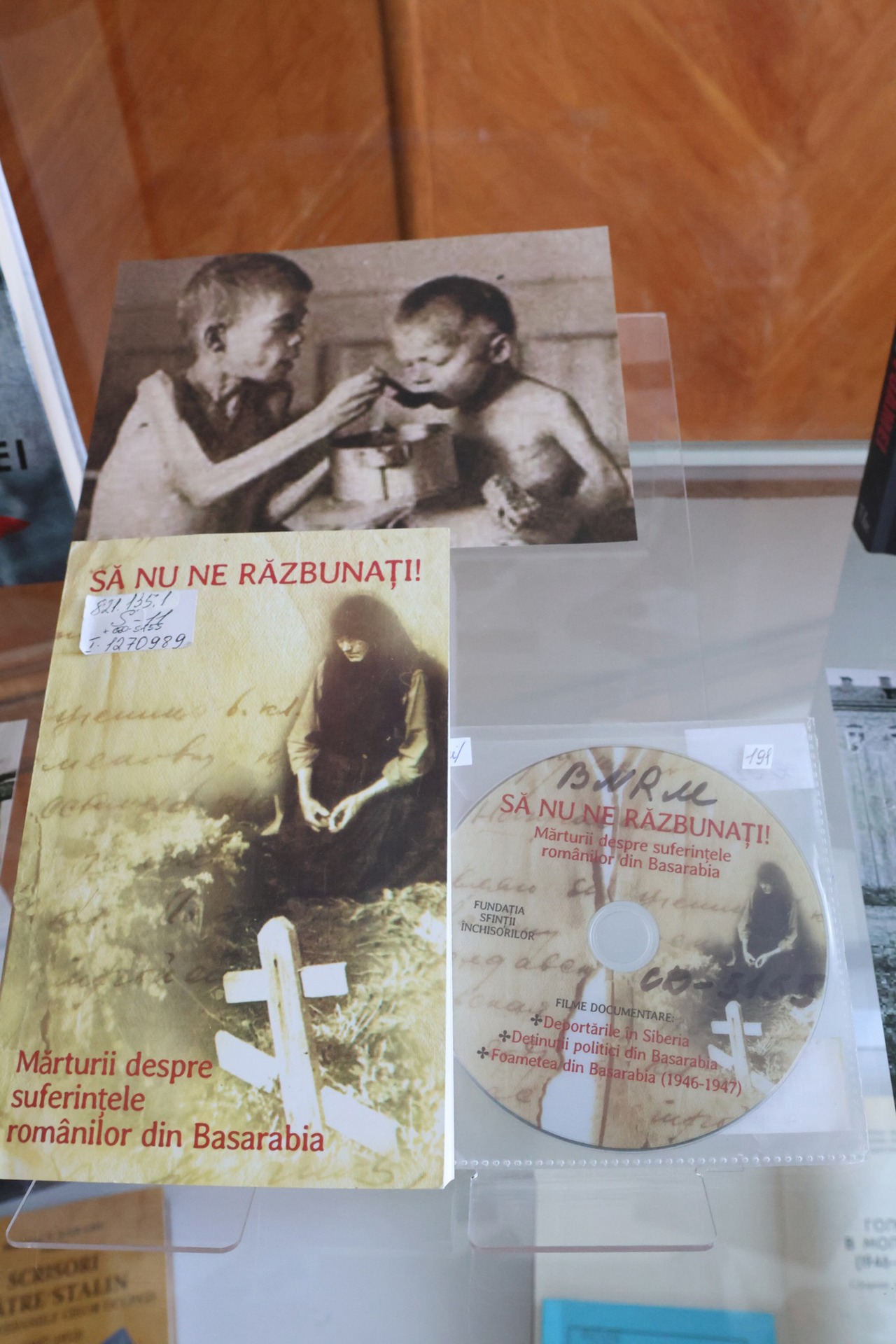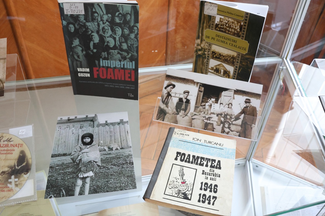 Titled "In the Jaws of the Soviet-Organized Famine in Bessarabia," the showcase features over 60 historical items. Visitors can view monographs, photo albums, and original editions of the "Moldova Socialistă" newspaper from that era.