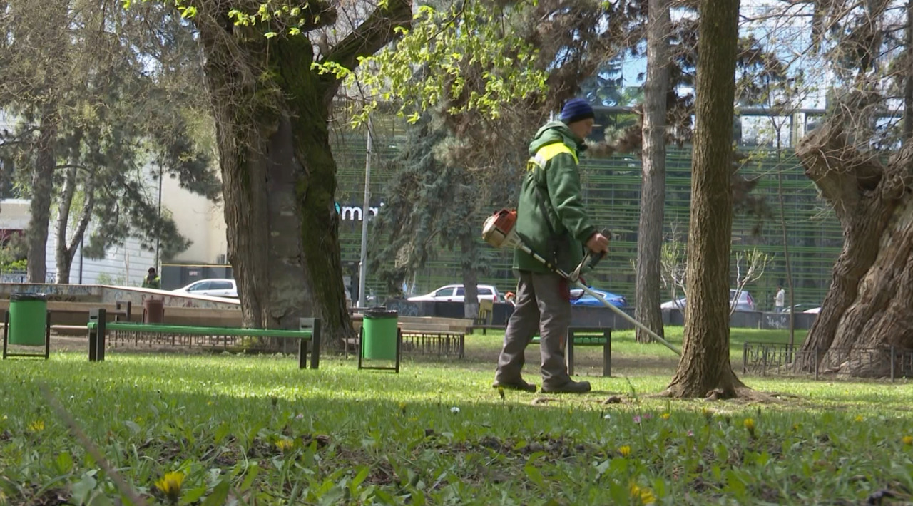 Every spring, workers from Spații Verzi take measures to control tick populations in the parks of Chisinau. They mow the lawns during the day and conduct chemical treatments at night.