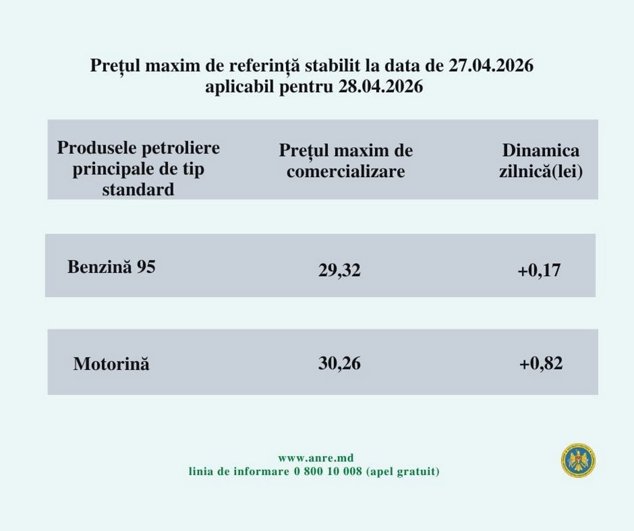Menționăm că, de la declanșarea războiului din Orientul Mijlociu, pe 28 februarie curent, prețul motorinei s-a scumpit cu 9.54 de lei, iar al benzinei - cu 5.57 de lei.