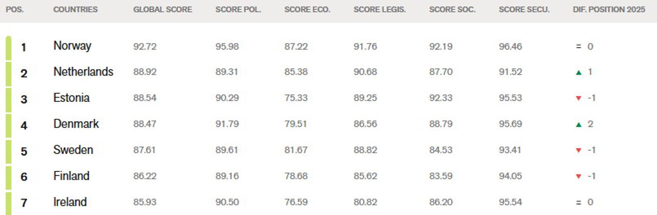 Eritrea has ranked last for the third year in a row, while post-Assad Syria achieved the most remarkable improvement, rising 36 places in the ranking.