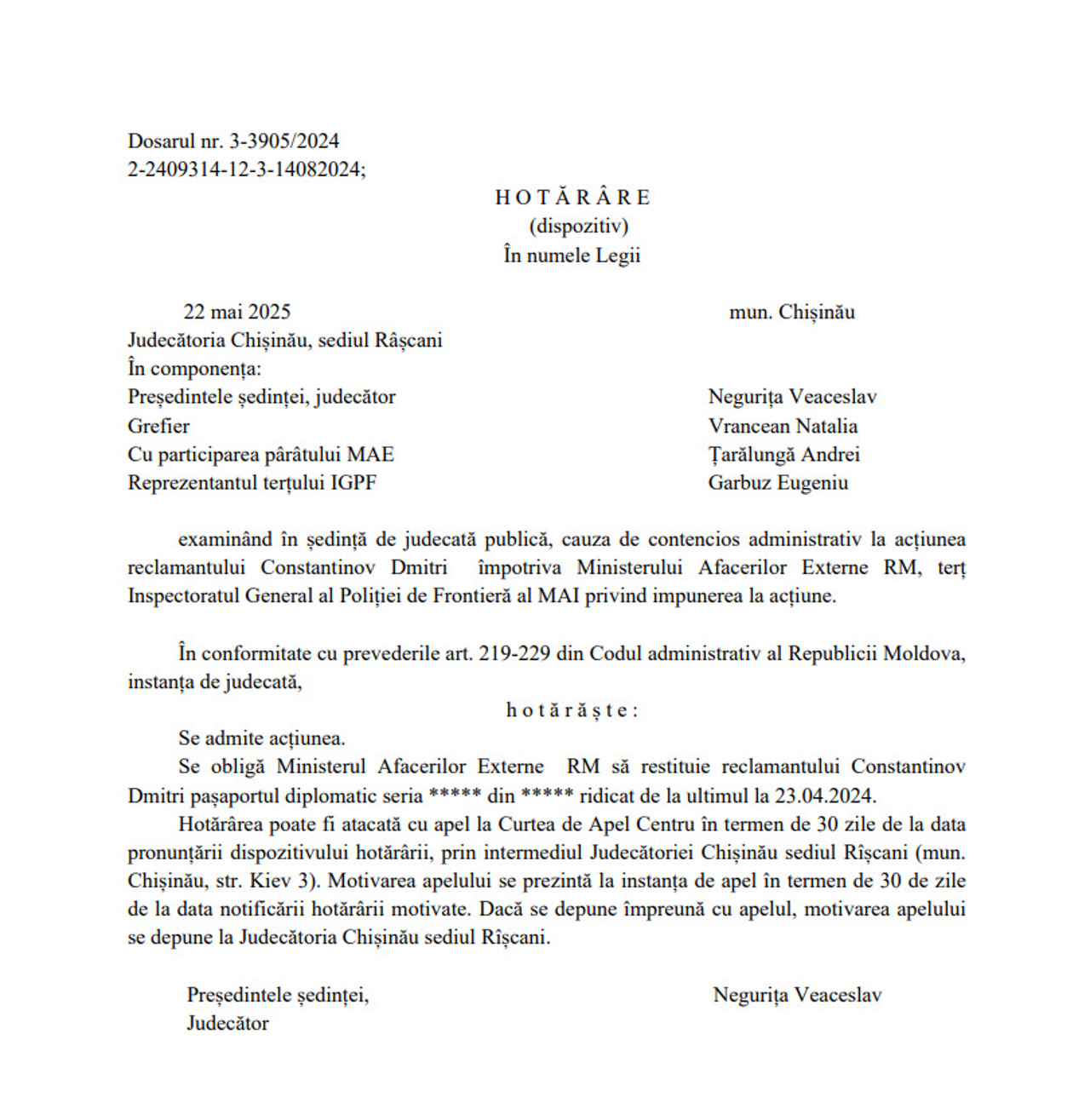 Instanța obligă MAE să-i restituie lui Dmitri Constantinov pașaportul diplomatic