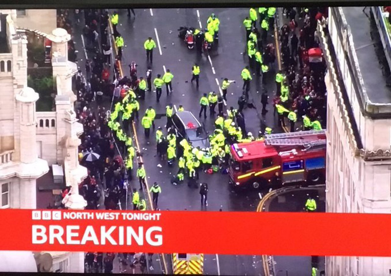 Accidentul a avut loc după încheierea paradei, când suporterii începeau să părăsească zona centrală. Autovehiculul a intrat în mulțime pe strada Water Street. Patru persoane, printre care un copil, au fost prinse sub mașină, potrivit șefului serviciului de pompieri din Merseyside.