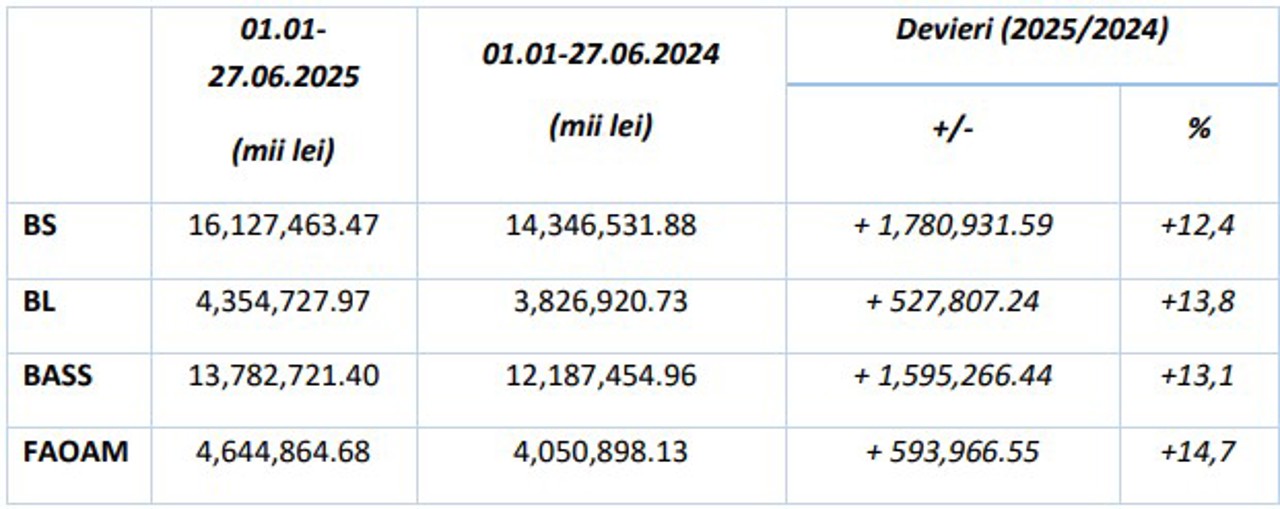 Menționăm că încasările la bugetul public național de la începutul anului curent, administrate de SFS, constituie circa 38,9 miliarde de lei, în creștere cu circa 4,5 miliarde de lei sau cu 13,1% în comparație cu perioada similară a anului precedent.