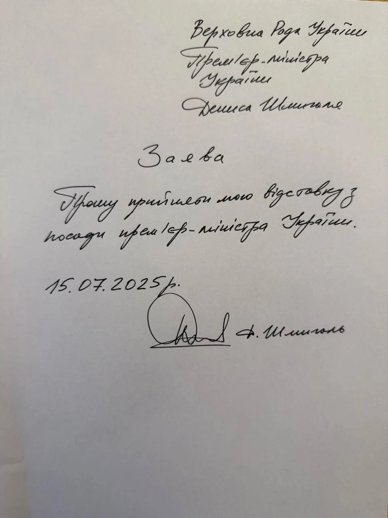 Prim-ministrul Ucrainei, Denis Șmîhal, a depus marți, 15 iulie, cererea de demisie. Anunțul a fost făcut de el însuși pe canalul său de Telegram.