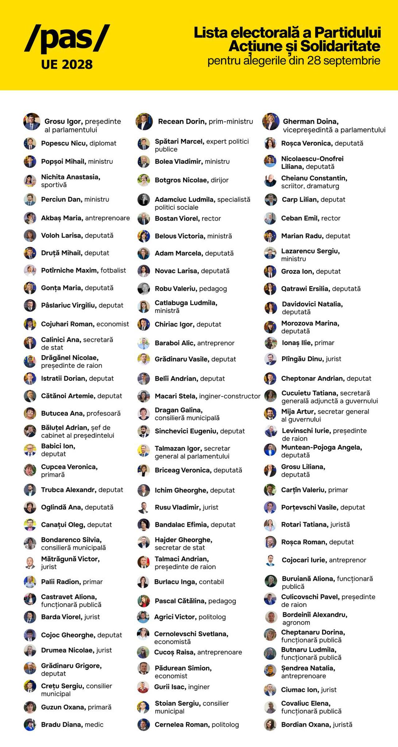 Consiliul Politic Național al Partidului Acțiune și Solidaritate (PAS), a votat, pe 20 iulie, lista partidului pentru alegerile parlamentare din 28 septembrie. Anunțul a fost făcut de către președintele PAS, Igor Grosu.