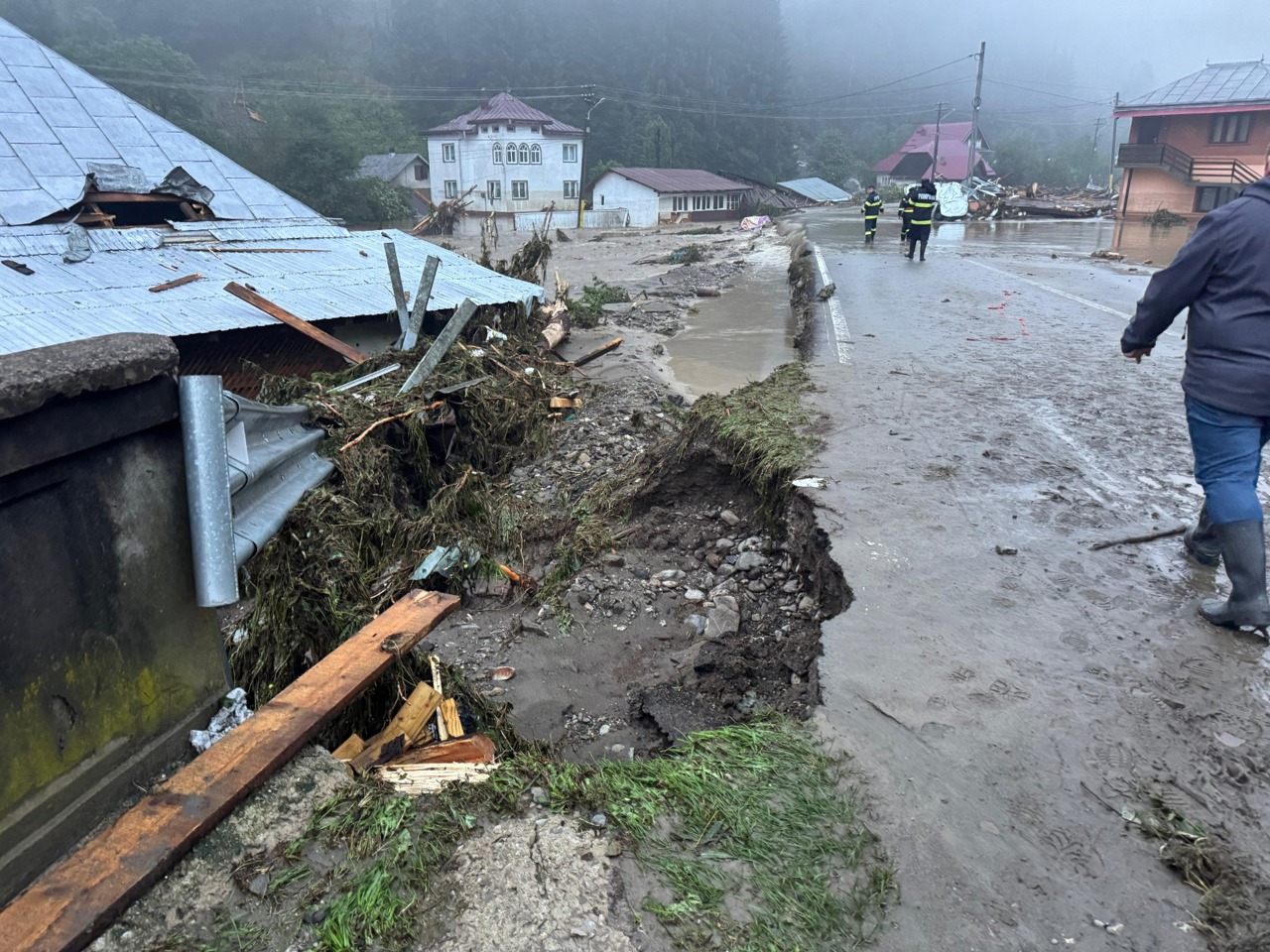 În Ostra, opt persoane, între care doi copii, au rămas izolate după ce apa a înconjurat casa în care se aflau și au fost salvate de pompieri. Viiturile au distrus poduri, au blocat drumuri naționale cu aluviuni și arbori doborâți, iar o șosea s-a surpat între Ostra și Stulpicani, transmite Digi24.ro.