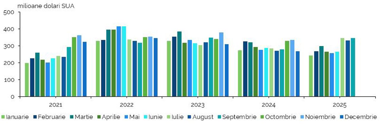 În primele nouă luni ale anului curent, exporturile R. Moldova au însumat 2.62 de miliarde de dolari SUA, cu doar 0.3% mai mult decât în primele nouă luni din 2024.