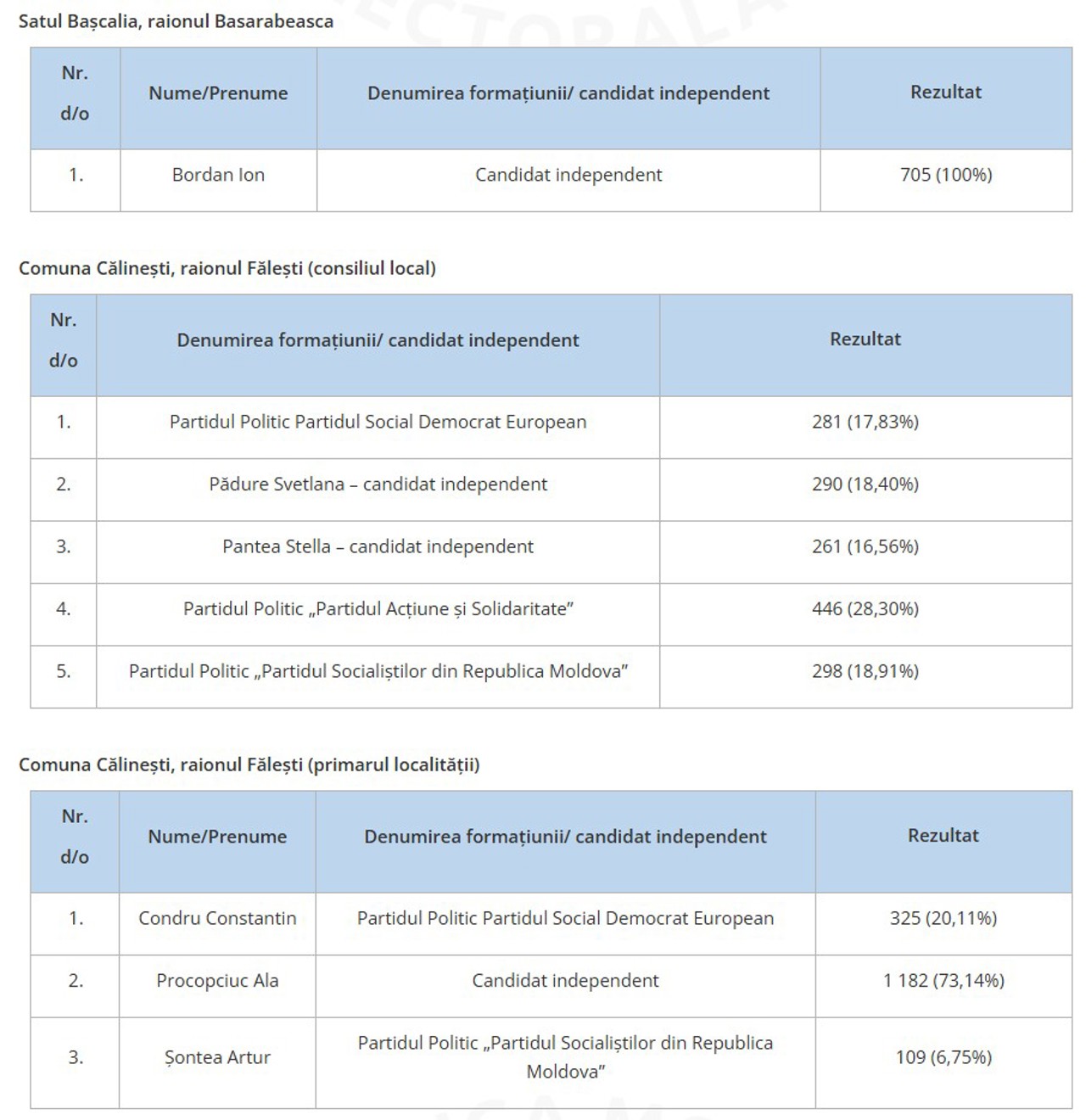 The village of Bașcalia in Basarabeasca and the commune of Călinești in Fălești district will be led by independent mayors: