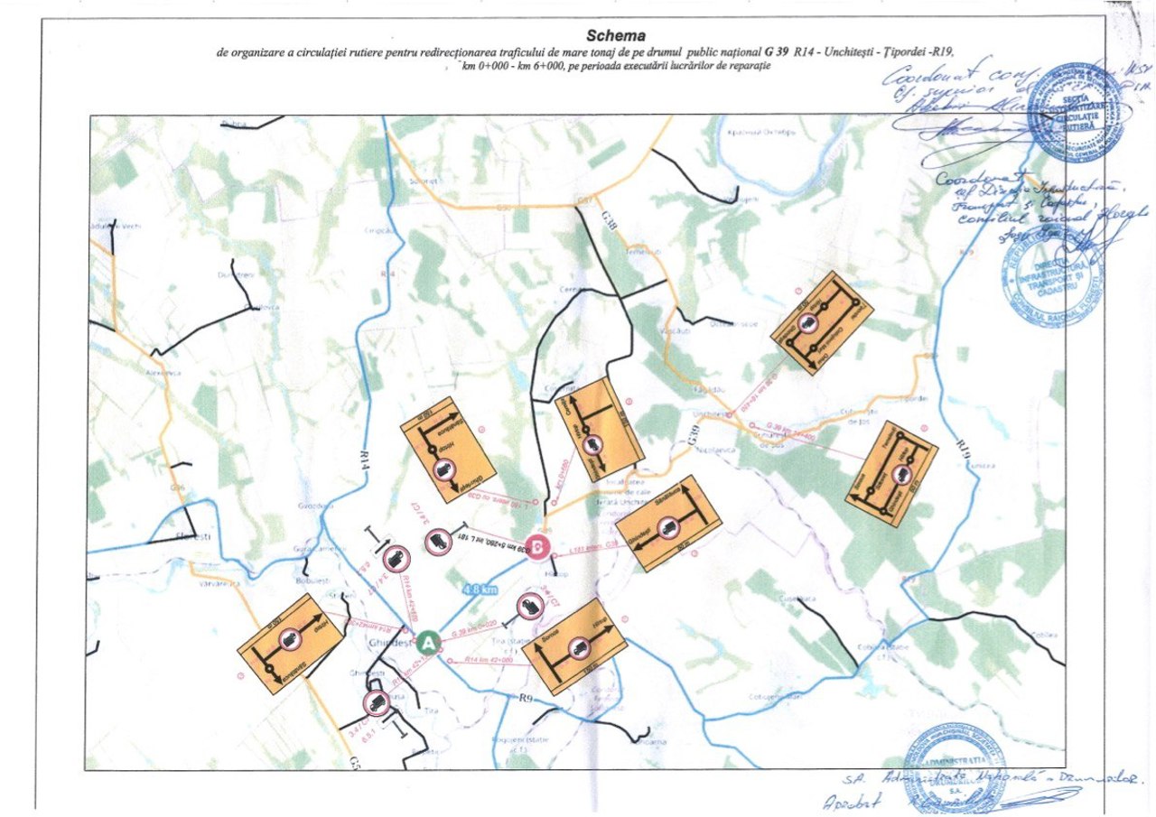 Circulația autovehiculelor de mare tonaj va fi redirecționată pe drumul G39 R14 – Unchitești – Țîpordei – R19, în zona șantierului de construcție, anunță Administrația Națională a Drumurilor (AND).