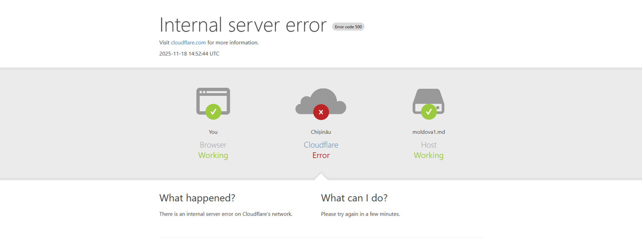 O defecțiune majoră la infrastructura Cloudflare, companie care deservește aproximativ o cincime din traficul global de Internet, a produs marți întreruperi pe scară largă ale unor servicii online, afectând numeroase site-uri, inclusiv din Republica Moldova.