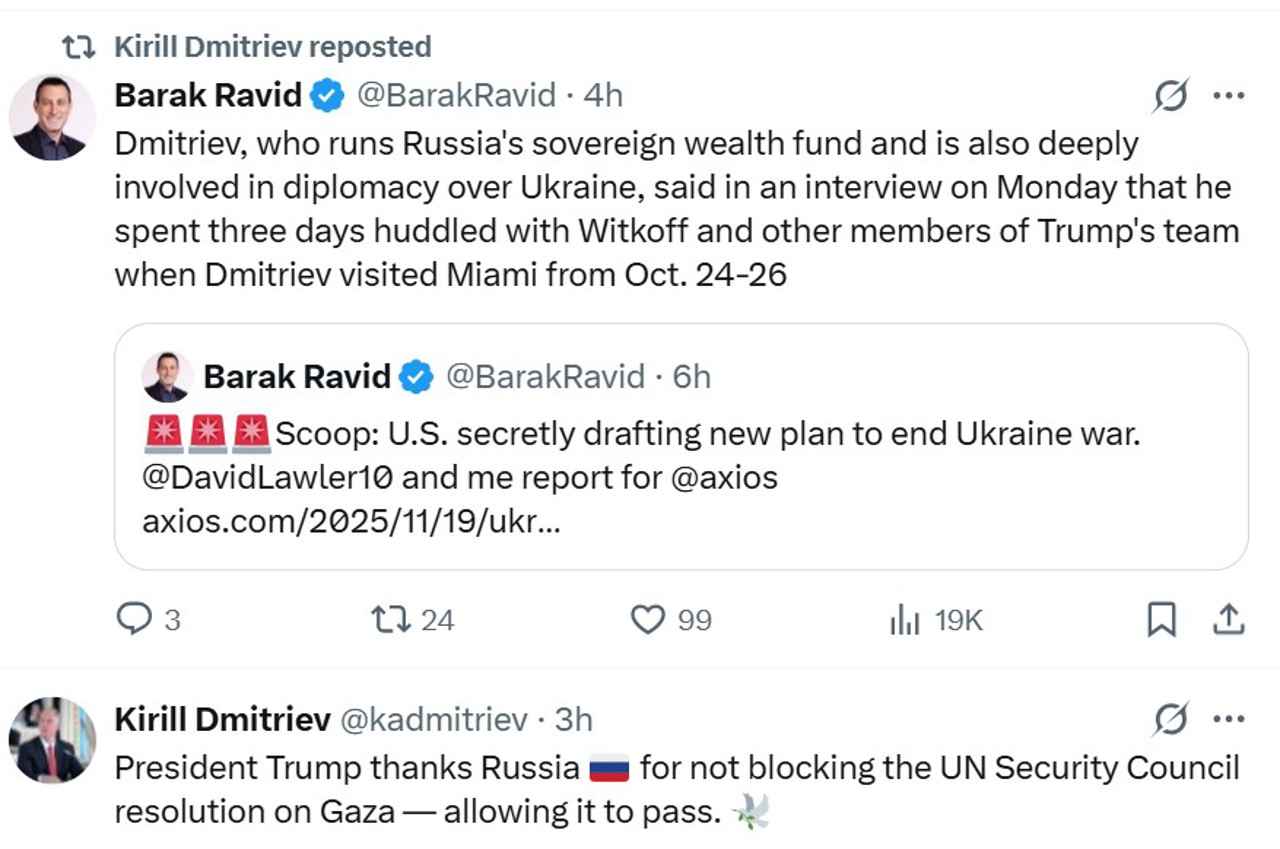 US Envoy Whitcoff Discusses Plan with Dmitriev