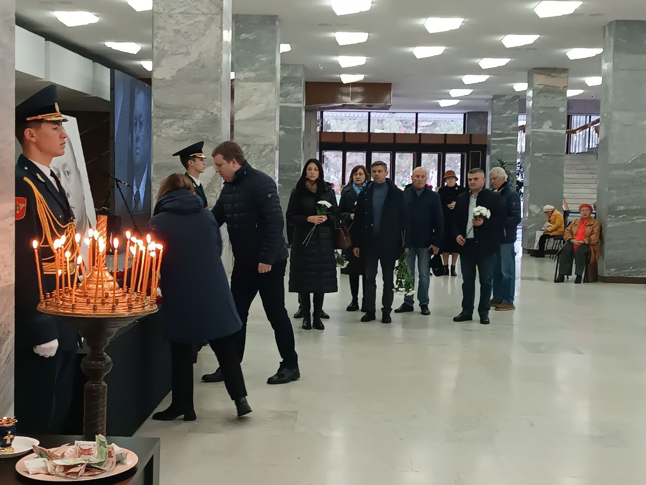 Oficialii au depus flori lângă fotografia lui Ilie Ilașcu, acolo unde fiecare a putut să își aducă omagiul celui care a lăsat în urmă celebra frază: „Te iubesc, popor român!”, rostită din cușca metalică în care era închis, acum mai bine de trei decenii, la Tiraspol.