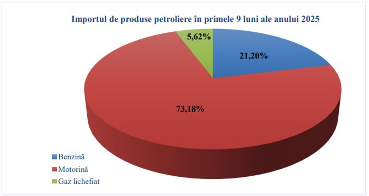 ANRE notes that, between January and September 2025, the Republic of Moldova imported 737,583 tons of petroleum products. Diesel fuel made up the largest share, with 539,770 tons, constituting over 73% of the total.
