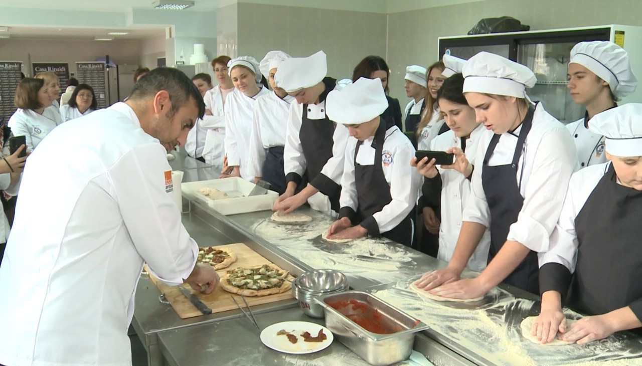 Elevii Școlii profesionale nr. 2 din capitală au învățat să gătească de la un bucătar italian. Gianni di Lella, triplu câștigător al Campionatului Mondial de Pizza, a oferit un masterclass. Cel mai complicat este frământatul aluatului, spun adolescenții care visează și ei să devină bucătari.