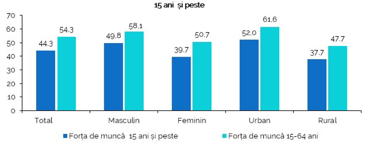 The final data from the 2024 Census reveals that just 44.3% of Moldovans aged 15 and over are actively participating in the labor market, either being employed or seeking employment.