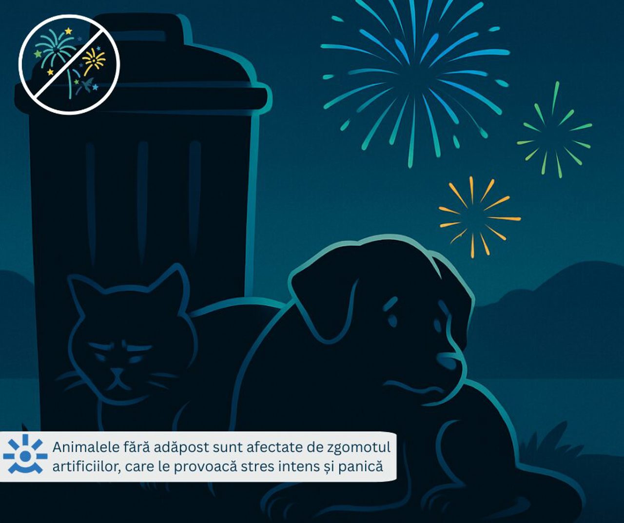 „Animalele sunt și ele printre victimele nevăzute ale artificiilor. Câini, pisici sau păsări ajung deseori în stare de stres intens, fug speriate sau se rănesc, iar fauna sălbatică are de suferit în fiecare sezon. În plus, pirotehnica lasă în urmă reziduuri toxice care ajung în aer, apă și sol”, mai atenționează Ceslav Panico și Vasile Coroi.