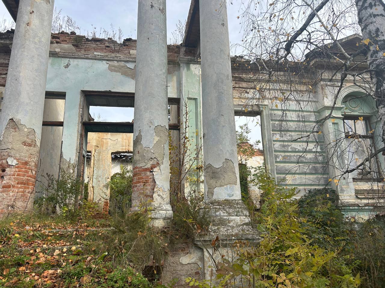 The manor was constructed in Russian Neoclassical style by a family of Polish nobles, and it was considered a true architectural jewel both inside and out. An elegant, marble-paved alley, lined with chestnut and pine trees, led to the entrance. Today, only the side walls remain. The structure is roofless, and its interior has been extensively vandalized.