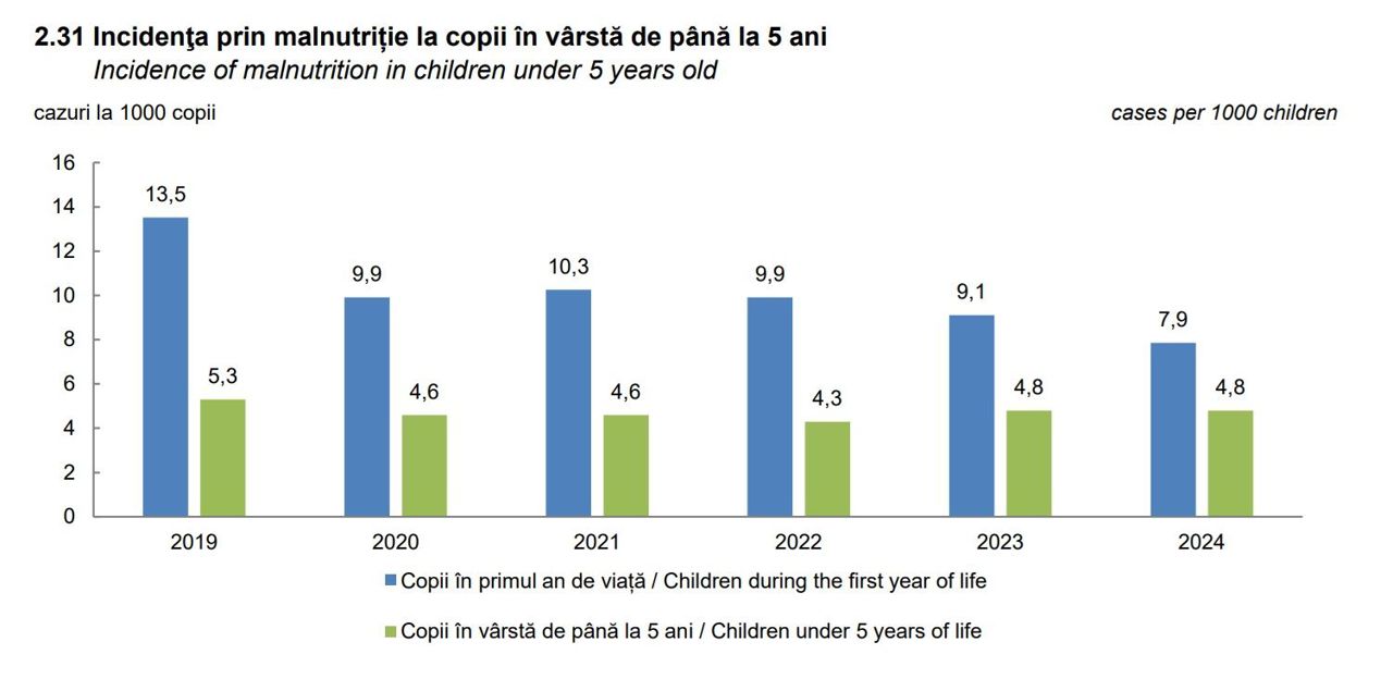 În ceea ce privește sprijinul financiar, raportul notează că indemnizația unică la naștere este de 20.000 de lei, cu 35.9 mii beneficiari în 2024.