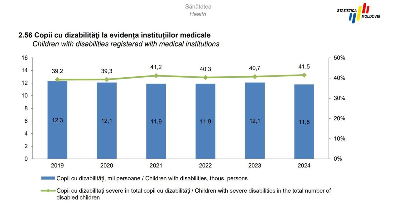 Totodată, 11.4 mii de copii cu dizabilități primesc alocații sociale lunare, aproape jumătate dintre ei având dizabilități severe.