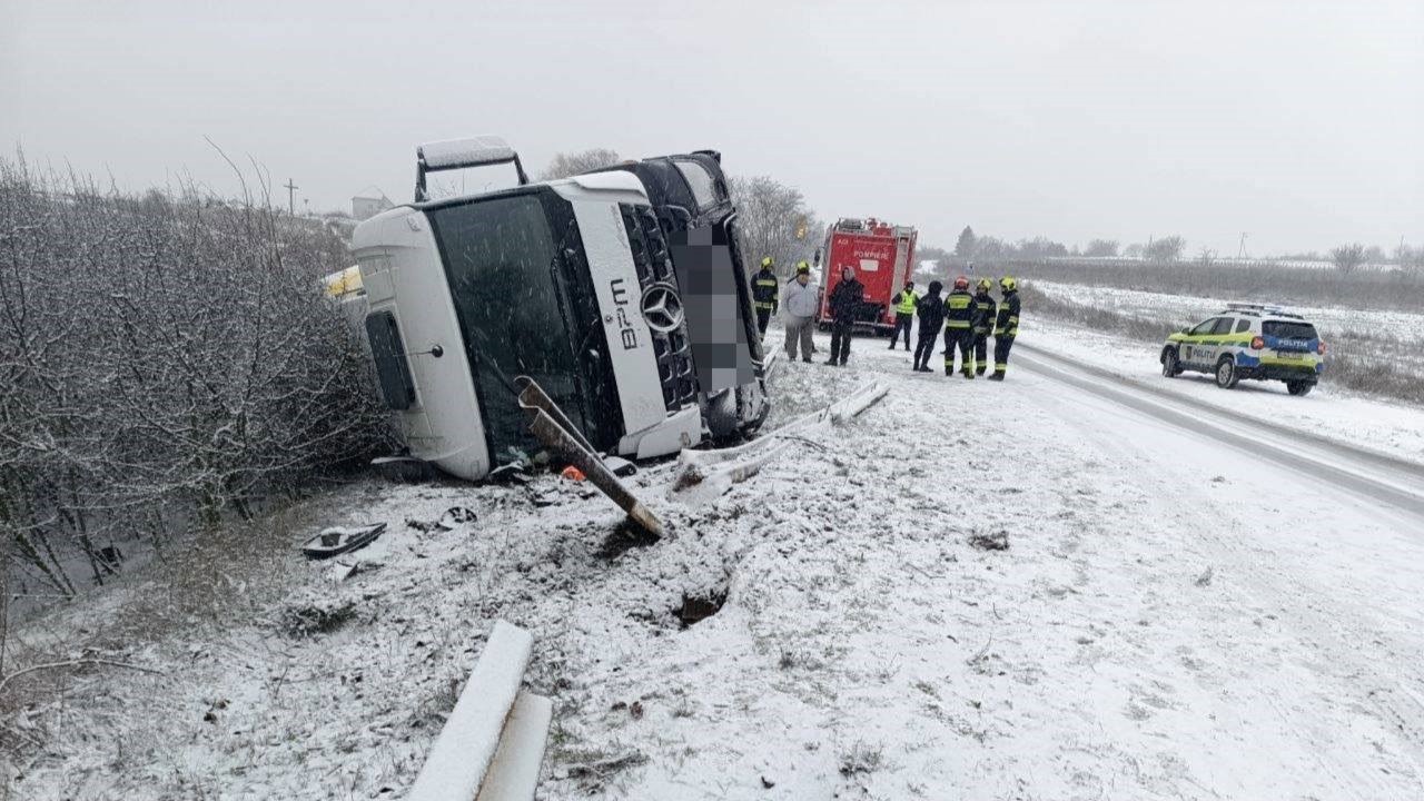 Trafic paralizat pe șoseaua Balcani, după răsturnarea unui camion
