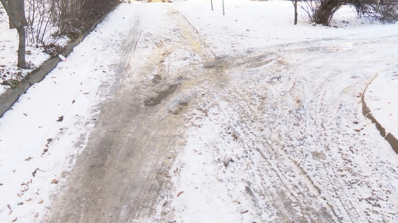„Nu e curățat drumul, e periculos în special pentru bătrâni, e problemă. Sperăm că se vor apuca de muncă, vor presăra niște material antiderapant”.