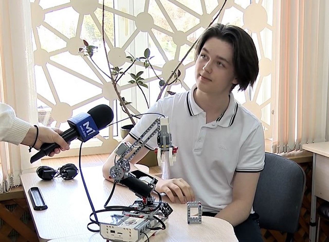 „Aceasta e o mână robotică. Dotată cu două motoare, își poate schimba poziția și duce un corp dintr-un loc în altul. Din ce vedeți, cele două degete sunt acționate de un motor adițional, care permit fixarea și transportarea corpurilor. „Clasa Viitorului” dezvoltă abilități cognitive, imaginative, dezvoltat gândirea critică și creativitatea”, a relatat elevul pentru Moldova 1.