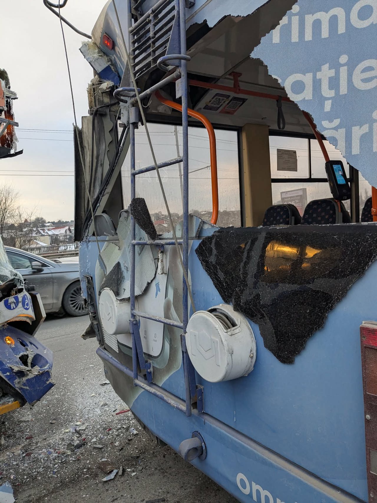 „S-a auzit un trosnet puternic, cei care eram în picioare am căzut jos. Sticla din spatele troleibuzului s-a spart, am văzut o fetiță care a fost rănită la nas, era însângerată”, a menționat o pasageră pentru Teleradio-Moldova.