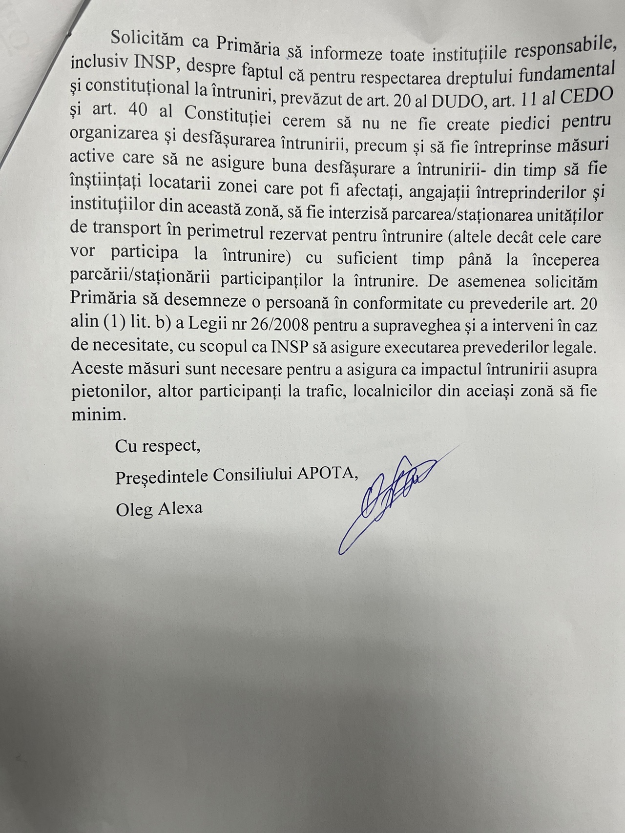 „Vom organiza o întrunire cu scopul de a ne exprima dezacordul față de inacțiunile ANTA săvârșite în scopul protejării afacerii ilegale legate de gara improvizată ilegal pe strada Calea Moșilor 2A, în apropiere de Gara de Nord”, arată Alexa în notificarea depusă la Primăria Chișinău.