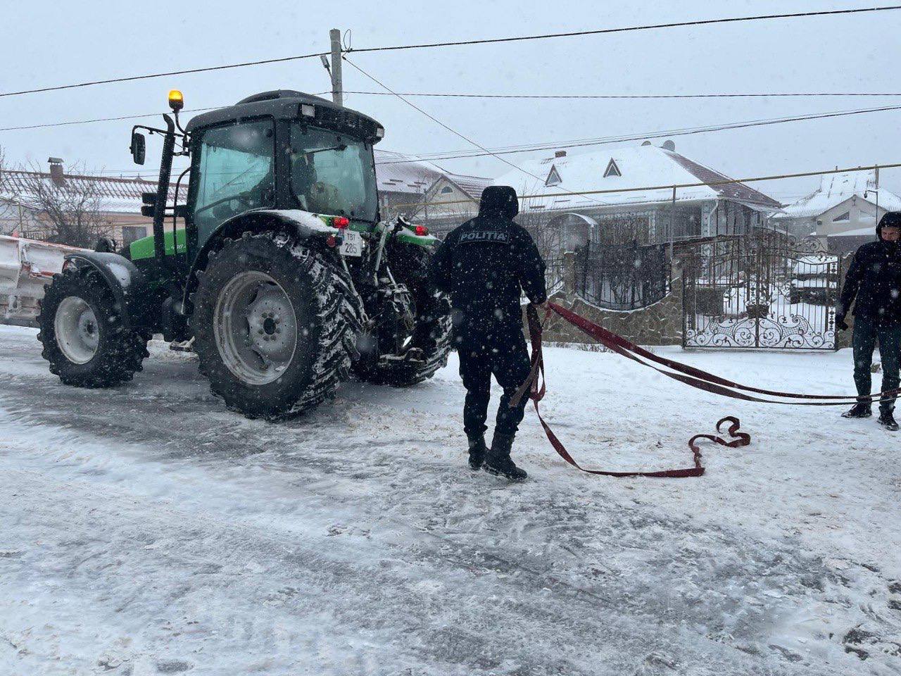 La Basarabeasca, un autoturism a fost tractat de un echipaj de poliție, iar o ambulanță blocată în trafic a fost deblocată de un alt echipaj și câțiva cetățeni.