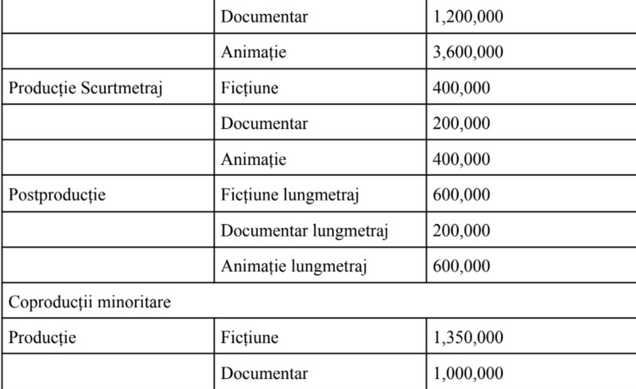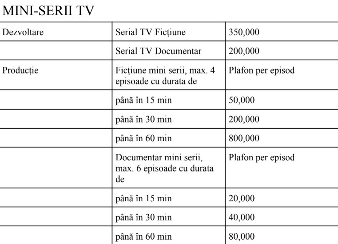 Bugetul total alocat pentru această sesiune este de 20 de milioane de lei, iar plafoanele de finanțare pentru proiectele de film și seriale TV sunt stabilite pe categorii.