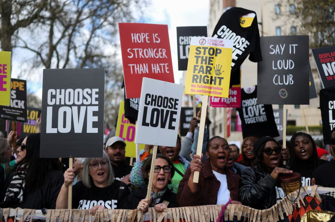 Mulțimile au ieșit pe străzile metropolei cu pancarte și mesaje precum: „Luptați împotriva ignoranței, Nu împotriva imigranților” și „Respingeți minciunile rasiste”, potrivit [BBC] (https://www.bbc.com/news/articles/cm2rn03ryz8o).