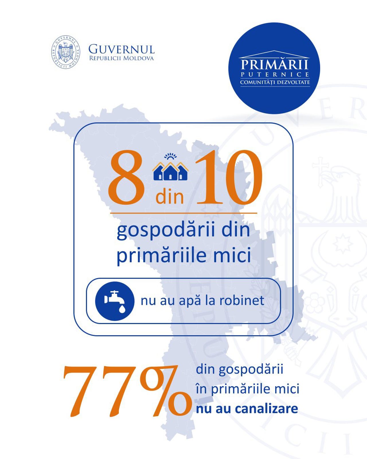 „Dacă, la nivelul țării, numărul de locuitori s-a redus cu 13.9%, în primăriile mici, cu sub 3.000 de locuitori, populația a scăzut cu aproximativ 32%. Din 10 familii care nu au canalizare, opt sunt în aceste localități, iar din 10 familii fără apă la robinet, șapte sunt tot acolo. Asta este realitatea din Republica Moldova - un cerc vicios în care comunitățile mici rămân fără resurse și fără perspectivă”, a declarat șeful Cancelariei de Stat, Alexei Buzu, într-o conferință de presă.