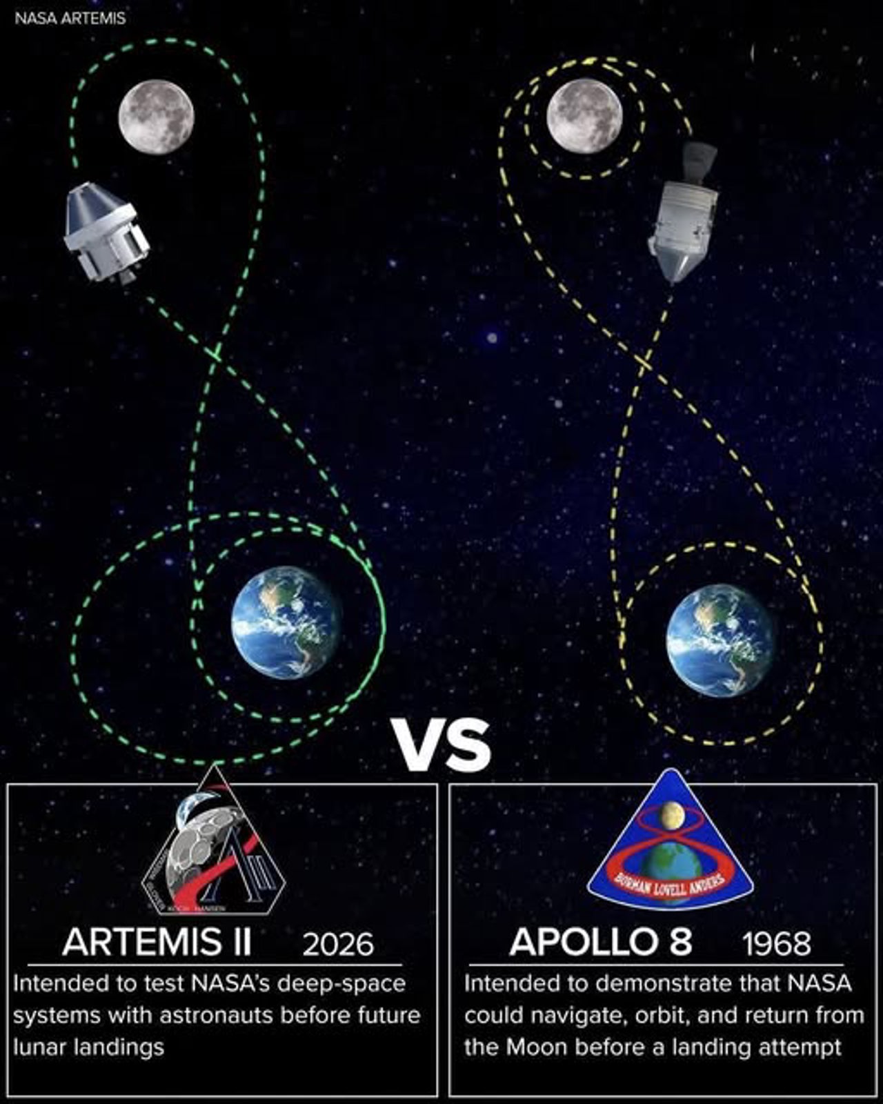 Punctul maxim de îndepărtare față de Pământ a fost de 406.000 de kilometri, iar distanța totală parcursă de capsulă — de la lansare, ieșirea din orbita terestră, zborul spre Lună, ocolirea acesteia și revenirea pe Pământ — a atins circa 1.1 milioane de kilometri.