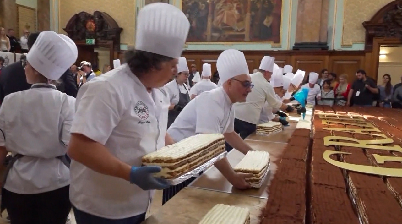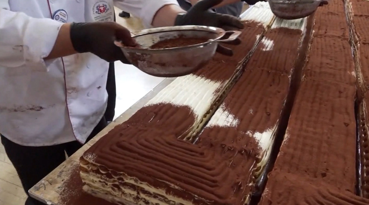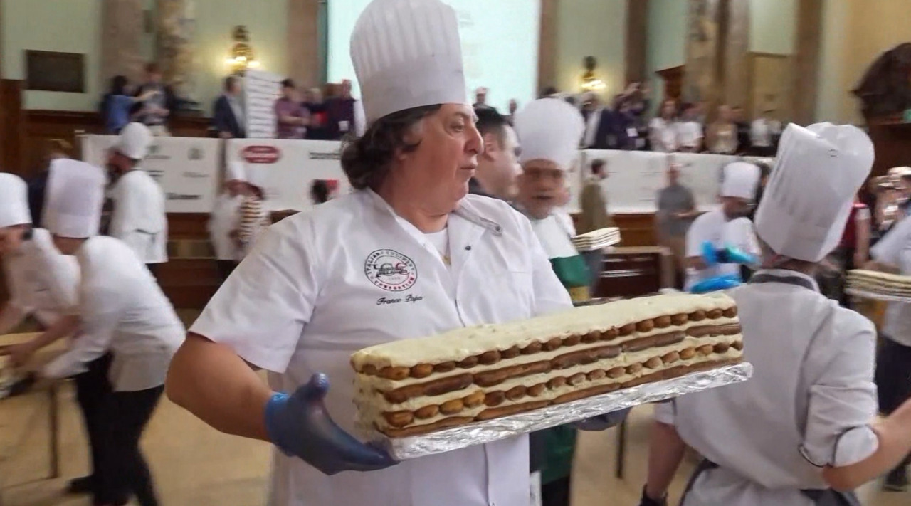 „Tiramisu trebuie să respecte dimensiuni minime: 8 cm înălțime și 15 cm lățime. Am făcut deja verificări punctuale și am constatat că aceste măsuri sunt respectate”, a menționat Marco Frigatti, judecător Guinnes World Records.